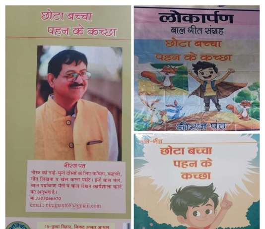 बाल दिवस के मौके पर सेवा निवृत्त प्रधानाचार्य, साहित्यकार नीरज पंत की बाल साहित्य पुस्तक “छोटा बच्चा पहन कर कच्छा”का लोकार्पण हुआ