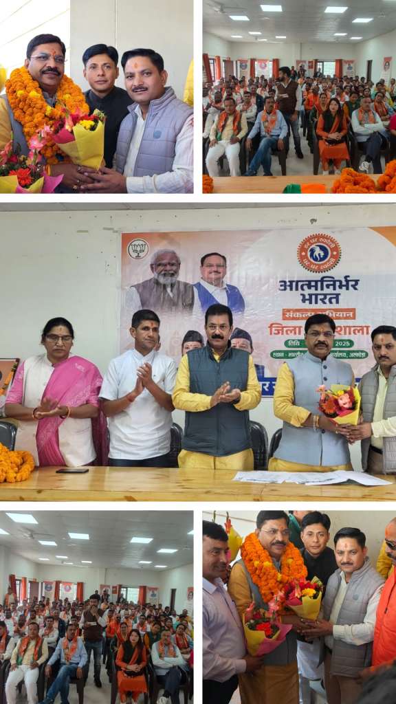 भारतीय जनता पार्टी, जनपद अल्मोड़ा के तत्वावधान में आज भाजपा कार्यालय, पातालदेवी में “आत्मनिर्भर भारत संकल्प अभियान” की जिला कार्यशाला आयोजित हुई।कार्यक्रम में मुख्य अतिथि के रूप में पार्टी के प्रदेश महामंत्री तरुण बंसल का अल्मोड़ा आगमन हुआ।कार्यक्रम की संयोजक टीम में ललित लटवाल, मीना भैसोड़ा एवं चंदन लाल टम्टा शामिल रहे।मंच पर पूर्व विधानसभा उपाध्यक्ष रघुनाथ चौहान, पूर्व विधायक कैलाश शर्मा, महापौर अजय वर्मा, दायित्वधारी गंगा बिष्ट एवं प्रदेश मंत्री गौरव पांडे उपस्थित रहे।कार्यक्रम का संचालन महामंत्री दर्शन रावत एवं प्रकाश भट्ट ने किया।अपने स्वागत भाषण में जिला अध्यक्ष महेश नयाल ने महामंत्री तरुण बंसल सहित सभी मंडल पदाधिकारियों का स्वागत किया।उन्होंने बताया कि यह अभियान पं. दीनदयाल उपाध्याय जी की जयंती (25 सितम्बर) से लेकर भारत रत्न अटल बिहारी वाजपेयी जी की जयंती (25 दिसम्बर) तक चलेगा।इस अवधि में पार्टी द्वारा “हर घर स्वदेशी” थीम के साथ जिला, विधानसभा एवं मंडल स्तर पर कार्यशालाएं आयोजित की जाएंगी।कार्यक्रम संयोजक ललित लटवाल ने कहा “हमारी सभ्यता और संस्कृति हमेशा आत्मनिर्भरता की प्रतीक रही है। हमारे पूर्वज सीमित संसाधनों में ही अपनी आवश्यकताओं की पूर्ति करते थे।