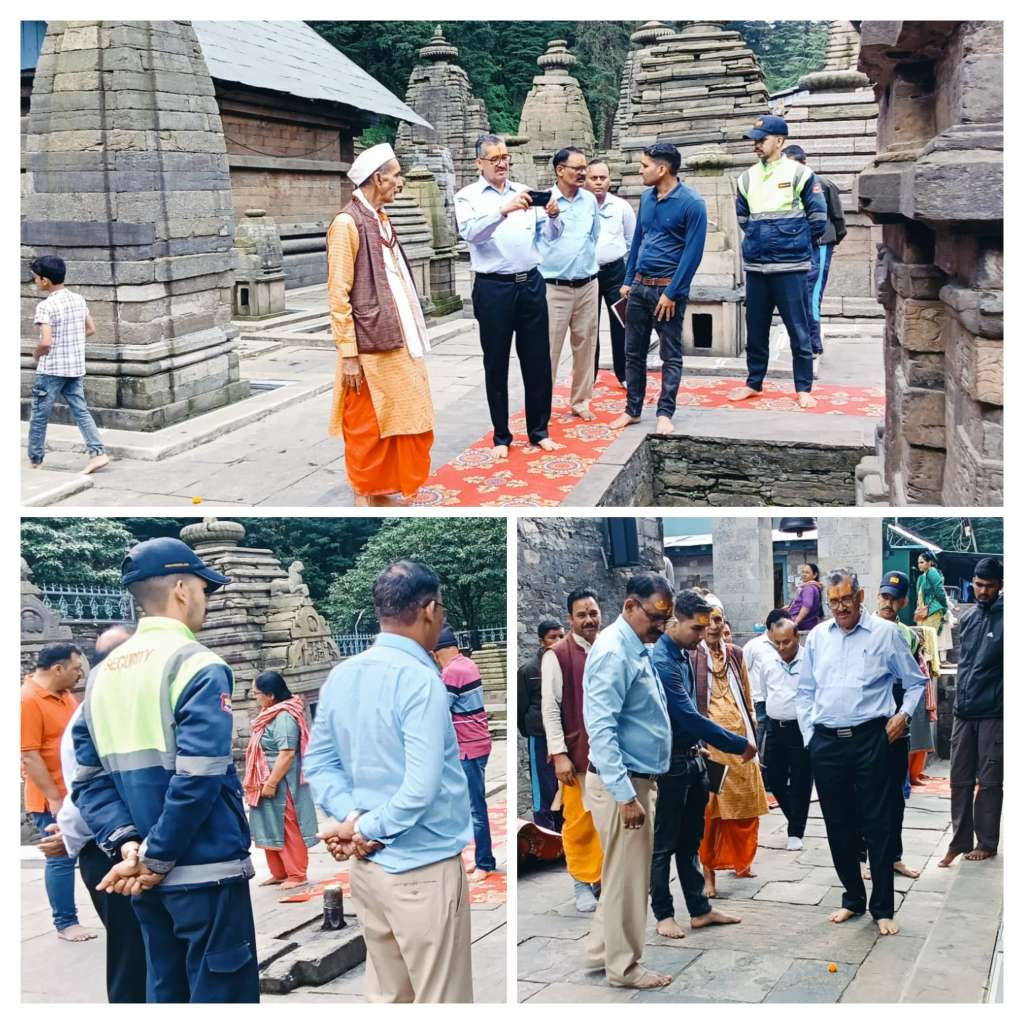 इस दौरान प0लक्ष्मी दत्त भट्ट, प0बाला दत्त भट्ट आदि ने मास्टर प्लान के तहत चल रहे कार्य साउंड,लाइटिंग आदि को लेकर उनके समक्ष शिकायत दर्ज की, जिस पर उन्होंने मंदिर परिसर में बारीकी से निरिक्षण किया,पाया कि कई लाइट वाले कई स्थानों पर पानी जमा होने की शिकायत मिली हैं वहीं कई जगह पत्थर टूट चुके हैं, इतना ही नहीं कई मंदिर खंडित होने की कगार पर हैं, इसके अलावा कुबेर मंदिर समूह में भी पटाल पूरी टूट चुके हैं इसके अलावा और कई खामिया उनके द्वारा देखी गई।