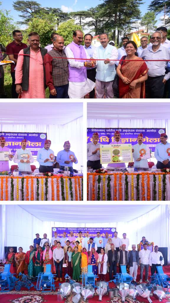 भाकृअनुप-विवेकानन्द पर्वतीय कृषि अनुसंधान संस्थान, अल्मोड़ा के प्रयोगात्मक प्रक्षेत्र हवालबाग में दिनॉक 03 अक्टूबर, 2025 को “विकसित कृषि विकसित राष्ट्र” थीम पर आधारित 51वें कृषि विज्ञान मेले का आयोजन किया गया। मेले का शुभारम्भ परिषद गीत से किया गया।समारोह के मुख्य अतिथि अजय टम्टा राज्यमंत्री, सड़क परिवहन एवं राजमार्ग, भारत सरकार ने अपने उदबोधन में संस्थान की उपलब्धियों पर भूरि भूरि प्रशंसा कर,हर्ष व्यक्त करते हुए कहा कि मैं जब भी केन्द्रीय स्तर पर कृषि से सम्बन्धित किसी बैठक में होता हूँ तो देश की कृषि प्रगति में अल्मोड़ा के विवेकानन्द संस्थान का नाम सुनकर मुझे अत्यन्त खुशी होती है तथा मैं स्वयं को गौरवान्वित महसूस करता हूँ।
