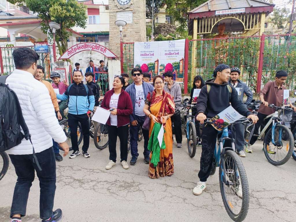 साइकिल रैली चौघानपाटा से प्रारंभ होकर एन.टी.डी., धारानौला, करबला मार्ग से होती हुई पुनः चौघानपाटा पहुंची। पूरे मार्ग में प्रतिभागियों ने पर्यावरण संरक्षण, स्वच्छता एवं सांस्कृतिक जागरूकता का संदेश दिया।