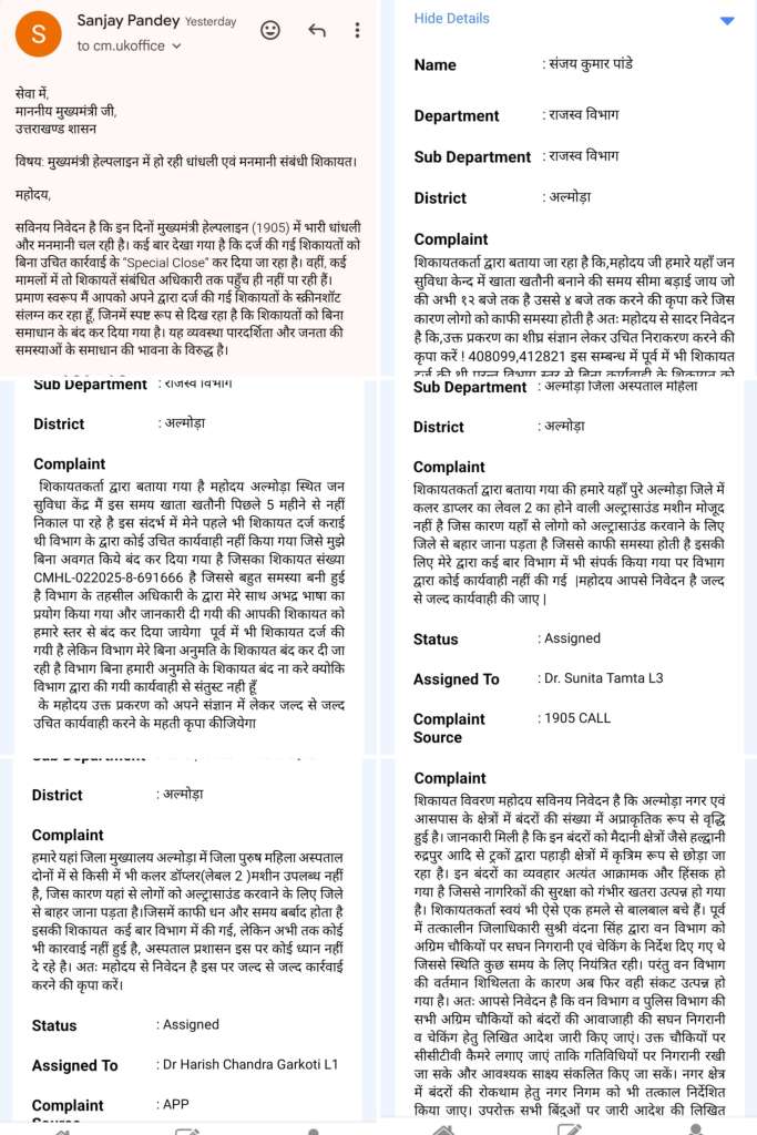जिला अल्मोड़ा के सामाजिक कार्यकर्ता संजय पाण्डे ने मुख्यमंत्री हेल्पलाइन को “जनता की उम्मीदों से विश्वासघात” बताते हुए इसकी कार्यप्रणाली पर गंभीर सवाल उठाए हैं।